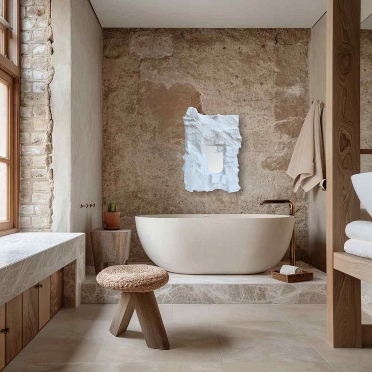 Χειροποίητος κρεμαστός γύψινος καθρέφτης λευκός με εφέ πέτρας Υ78εκΠ54εκΠάχος10εκ.