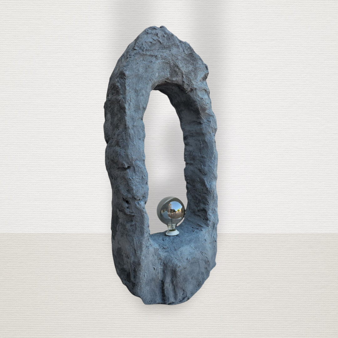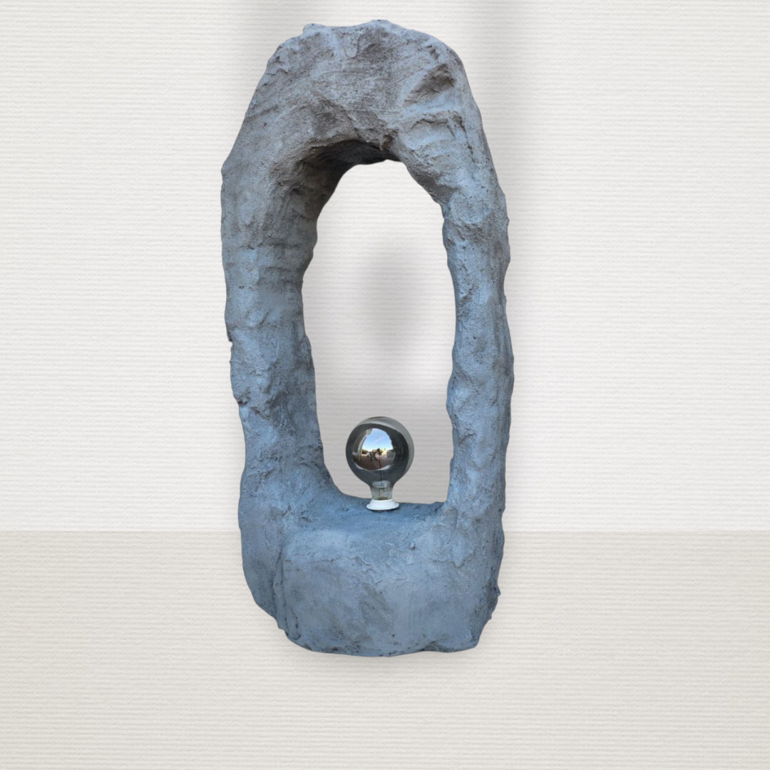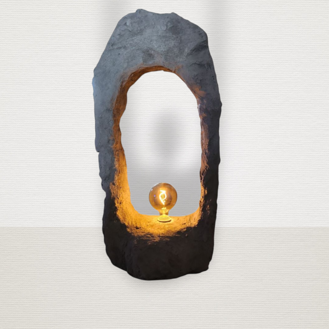 Χειροποίητο γύψινο φωτιστικό δαπέδου, Υ100εκΠ48εκΒ30εκ, με εφέ πέτρας και λαμπτήρα γλόμπο φιμέ. *ο λαμπτήρας περιέχεται: led filament bulb 220-240V-2W-E27 Θερμό Ρετρό.