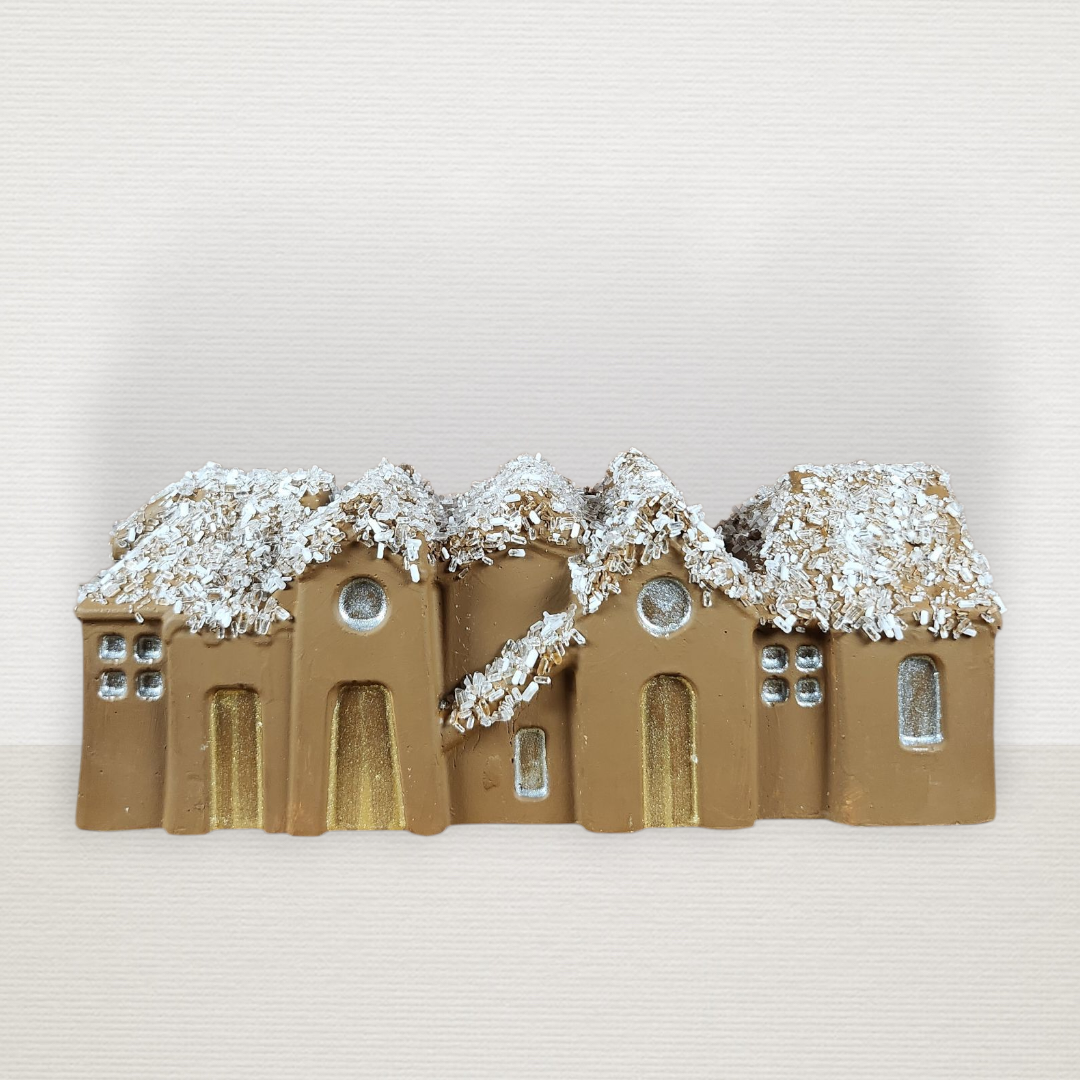 Διακοσμητικό γύψινο χωριό καφέ-λευκό με λεπτομέρειες χρυσές και ασημί. Μ28,5εκΠ9εκ.Υ6,8εκ. ΔΙΑΘΕΣΙΜΟ ΚΑΤΑ ΠΑΡΑΓΓΕΛΙΑ *όλα μας τα προϊόντα είναι 100% χειροποίητα, μοναδικά κομμάτια! Σας ενημερώνουμε ότι τα προϊόντα που είναι κατά παραγγελία, ενδέχεται να έχουν κάποιες διαφορές στο σχήμα και το χρώμα.