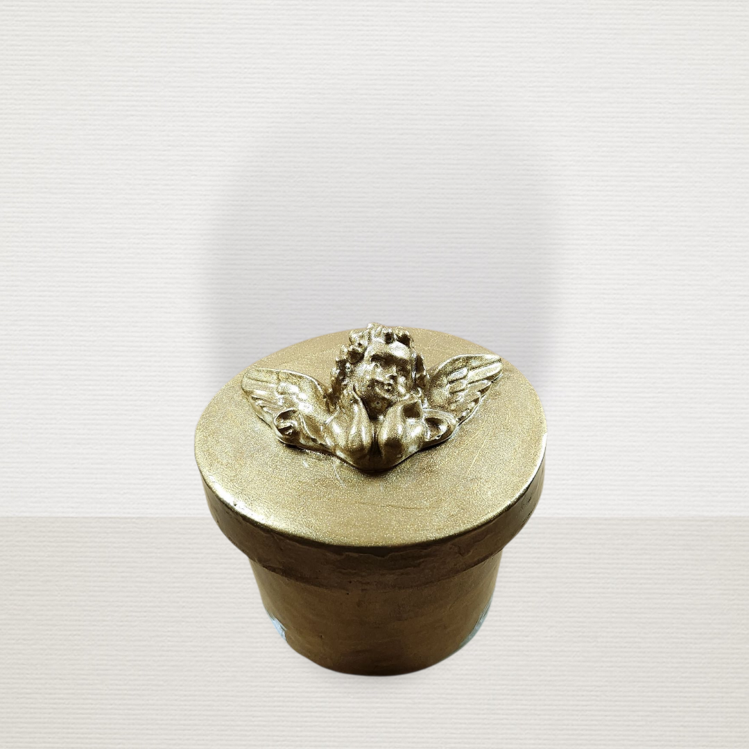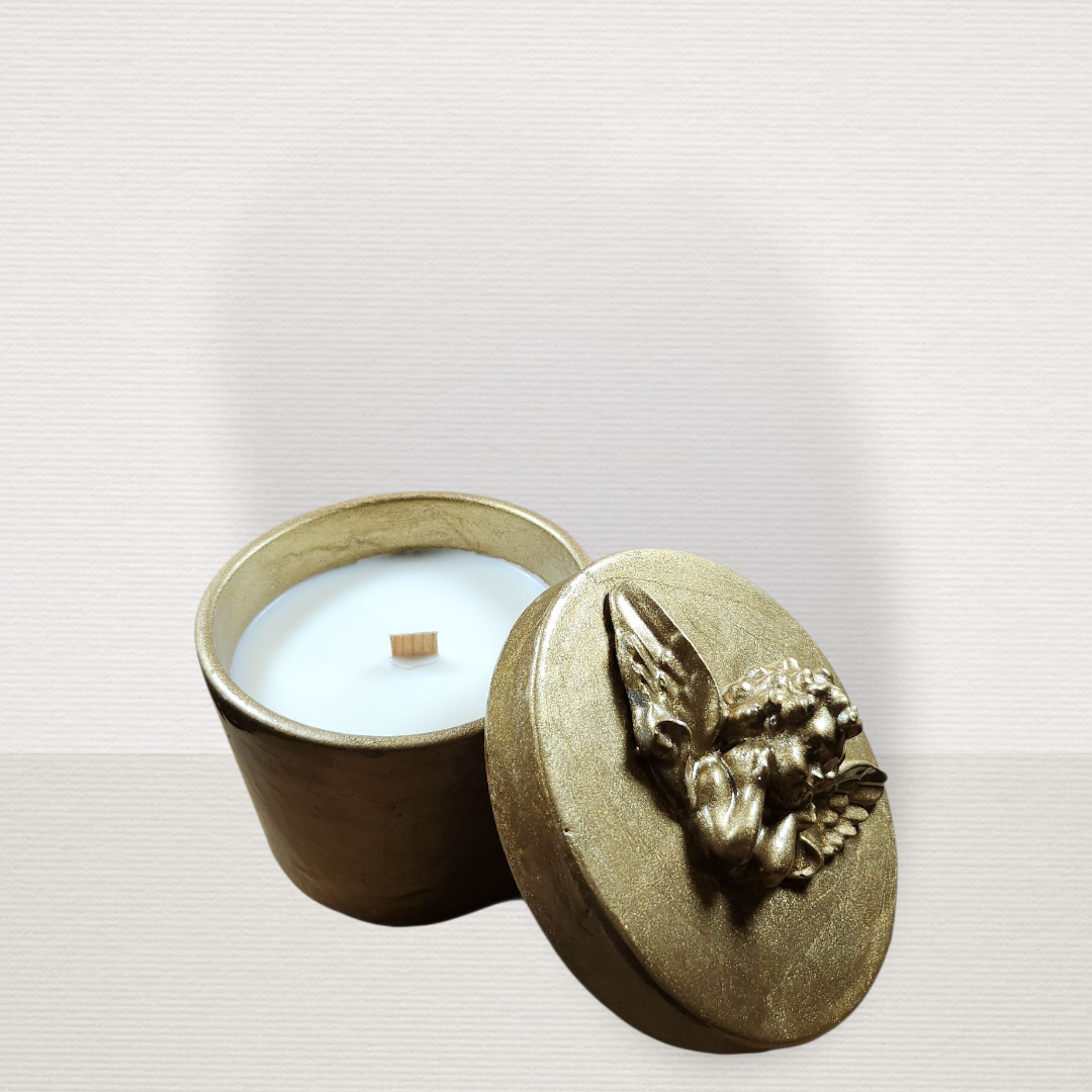 Κερί σόγιας 280γρ. με ξύλινο φυτίλι, σε γύψινο βάζο με καπάκι με άγγελο χρυσό. Υ10.5εκΔ12εκ. ΔΙΑΘΕΣΙΜΟ ΚΑΤΑ ΠΑΡΑΓΓΕΛΙΑ σε ό,τι άρωμα επιθυμείτε. *όλα μας τα προϊόντα είναι 100% χειροποίητα, μοναδικά κομμάτια!