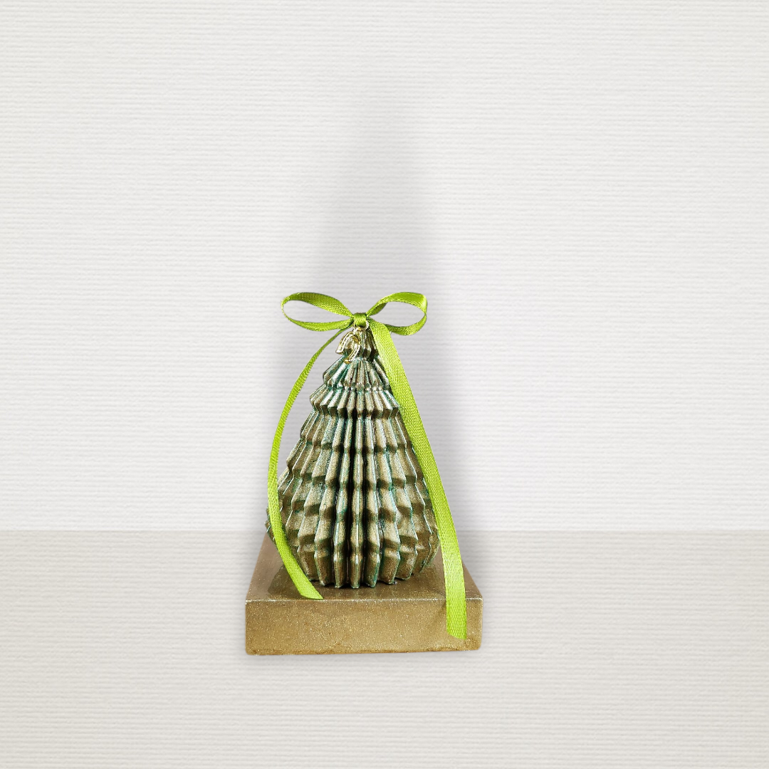 Γούρι Σε Βάση Με Δέντρο Origami Πράσινο-Χρυσό CHR2034