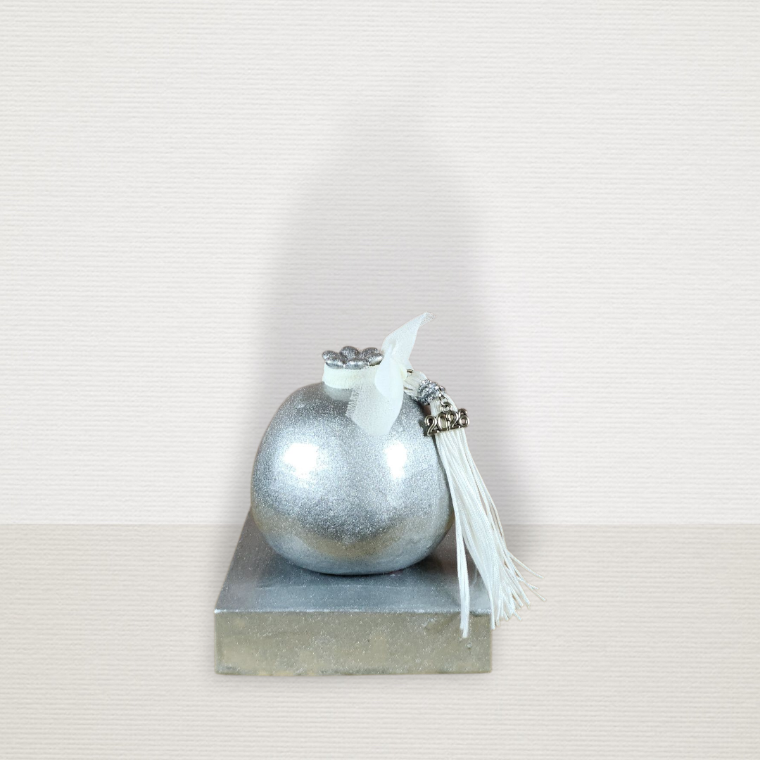 Γούρι σε βάση με ρόδι ασημί. Μ8εκΠ8εκΥ8,5εκ. ΔΙΑΘΕΣΙΜΟ ΚΑΤΑ ΠΑΡΑΓΓΕΛΙΑ *όλα μας τα προϊόντα είναι 100% χειροποίητα, μοναδικά κομμάτια! Σας ενημερώνουμε ότι τα προϊόντα που είναι κατά παραγγελία, ενδέχεται να έχουν κάποιες διαφορές στο σχήμα και το χρώμα.