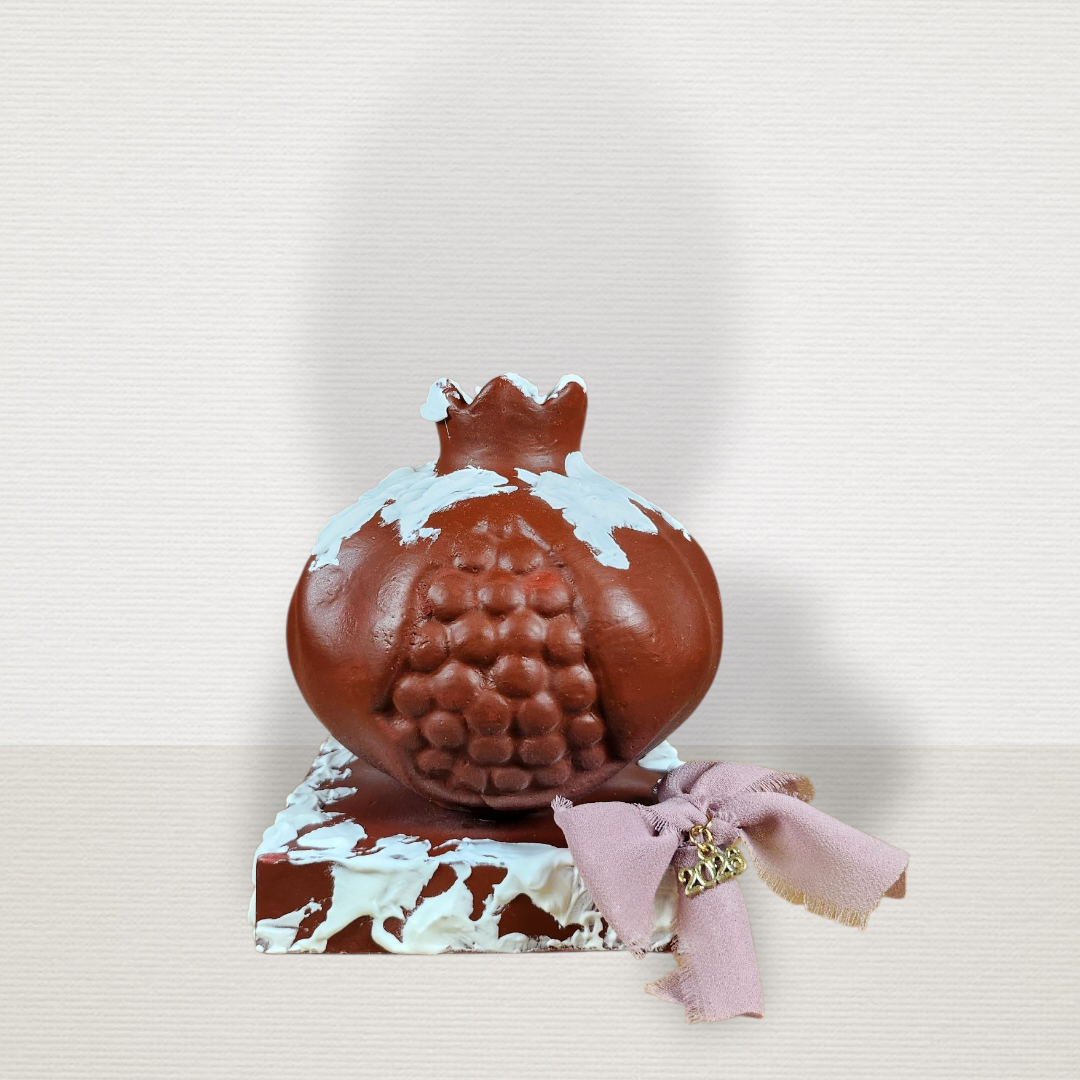 Γούρι σε βάση με ρόδι μπορντώ με εφέ χιονιού. Μ10εκΠ10εκΥ11,5εκ. ΔΙΑΘΕΣΙΜΟ ΚΑΤΑ ΠΑΡΑΓΓΕΛΙΑ *όλα μας τα προϊόντα είναι 100% χειροποίητα, μοναδικά κομμάτια! Σας ενημερώνουμε ότι τα προϊόντα που είναι κατά παραγγελία, ενδέχεται να έχουν κάποιες διαφορές στο σχήμα και το χρώμα.