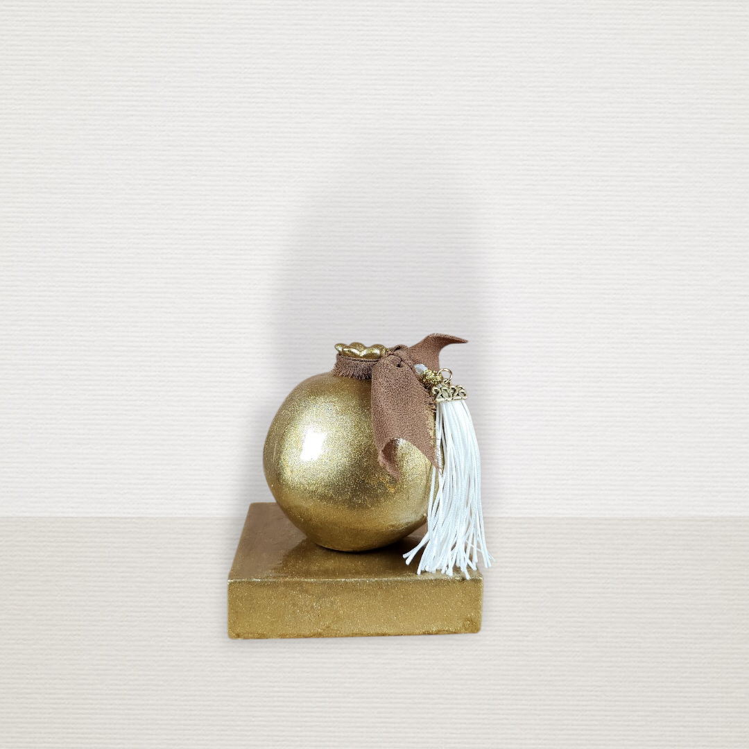 Γούρι σε βάση με ρόδι χρυσό. Μ8εκΠ8εκΥ8,5εκ. ΔΙΑΘΕΣΙΜΟ ΚΑΤΑ ΠΑΡΑΓΓΕΛΙΑ *όλα μας τα προϊόντα είναι 100% χειροποίητα, μοναδικά κομμάτια! Σας ενημερώνουμε ότι τα προϊόντα που είναι κατά παραγγελία, ενδέχεται να έχουν κάποιες διαφορές στο σχήμα και το χρώμα.