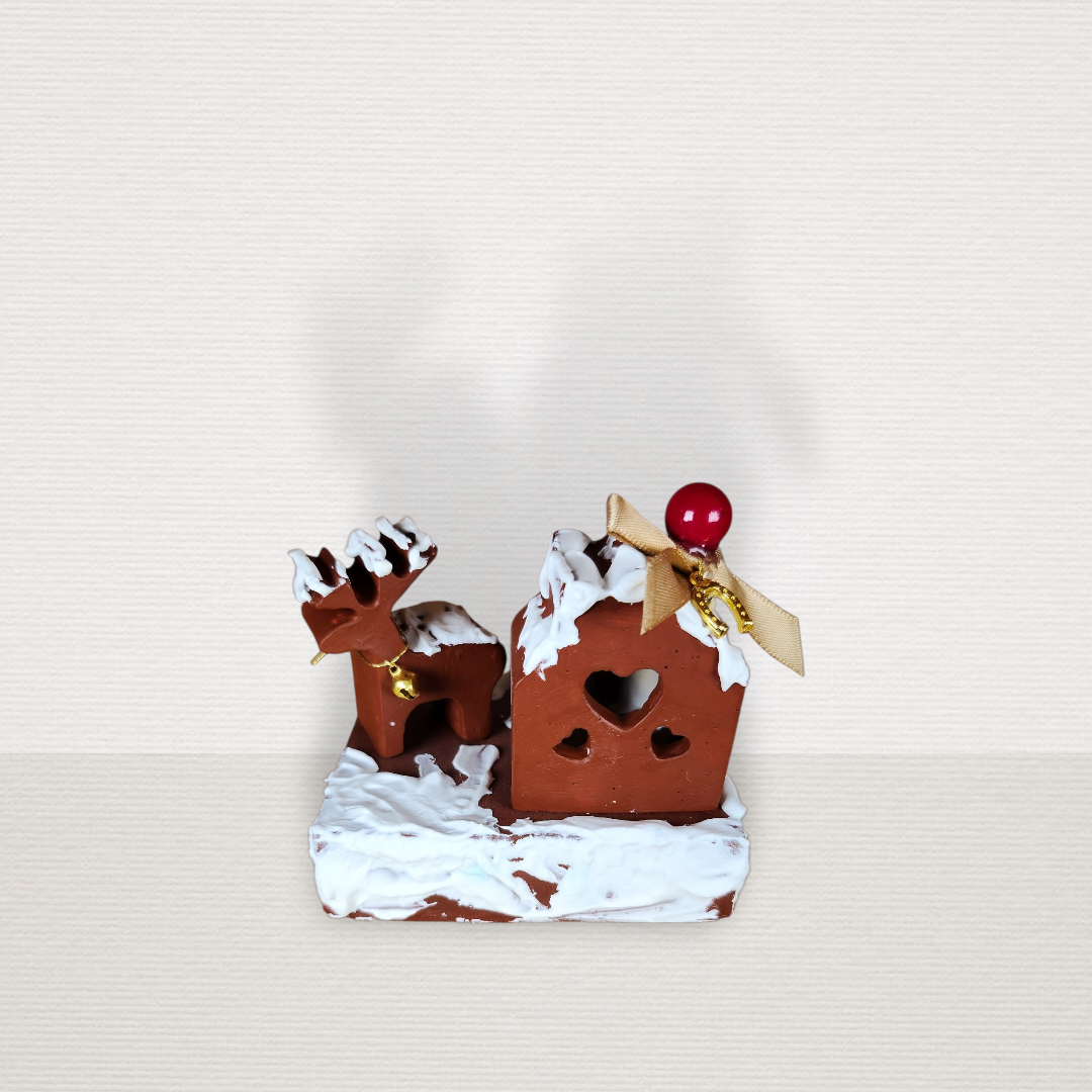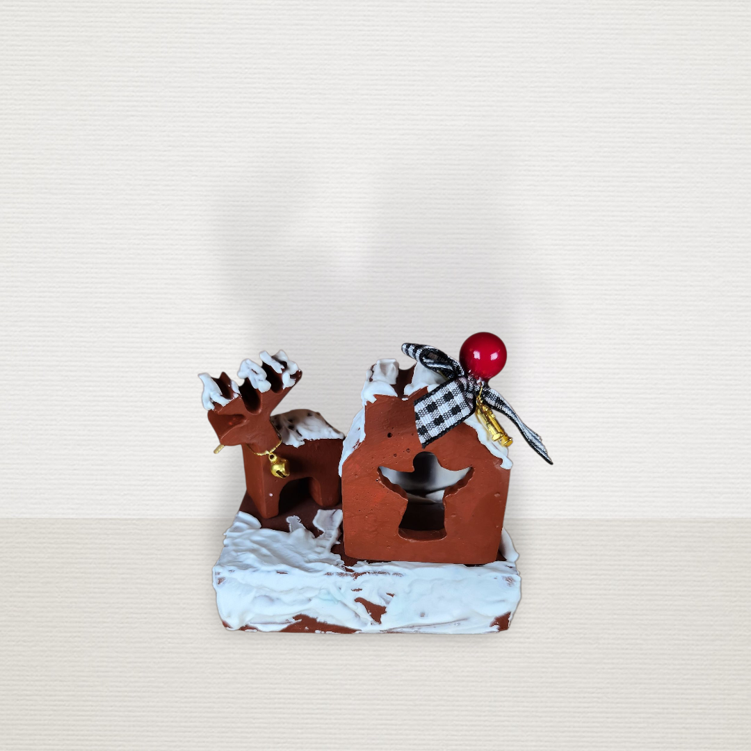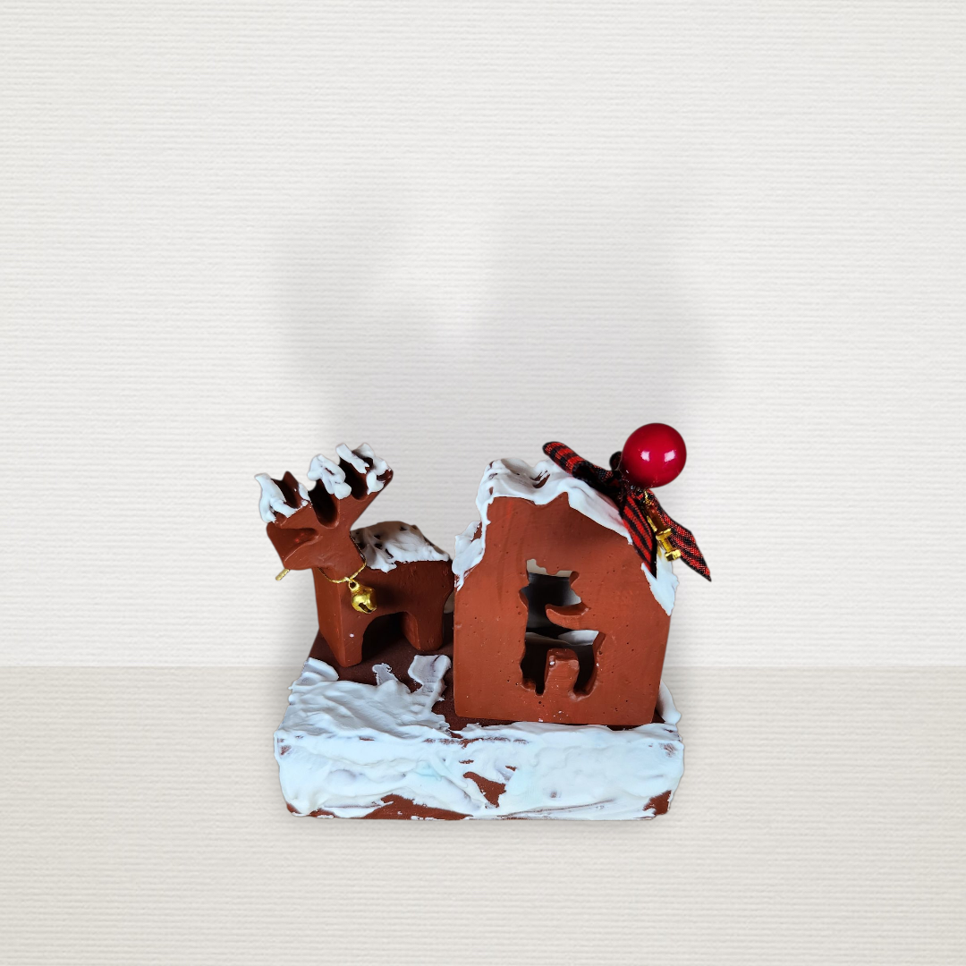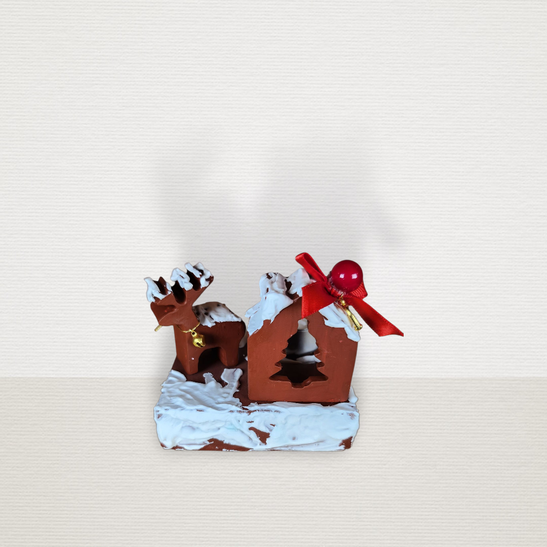 Γούρι Σε Βάση Με Σπίτι & Τάρανδο Μπορντώ CHR2014