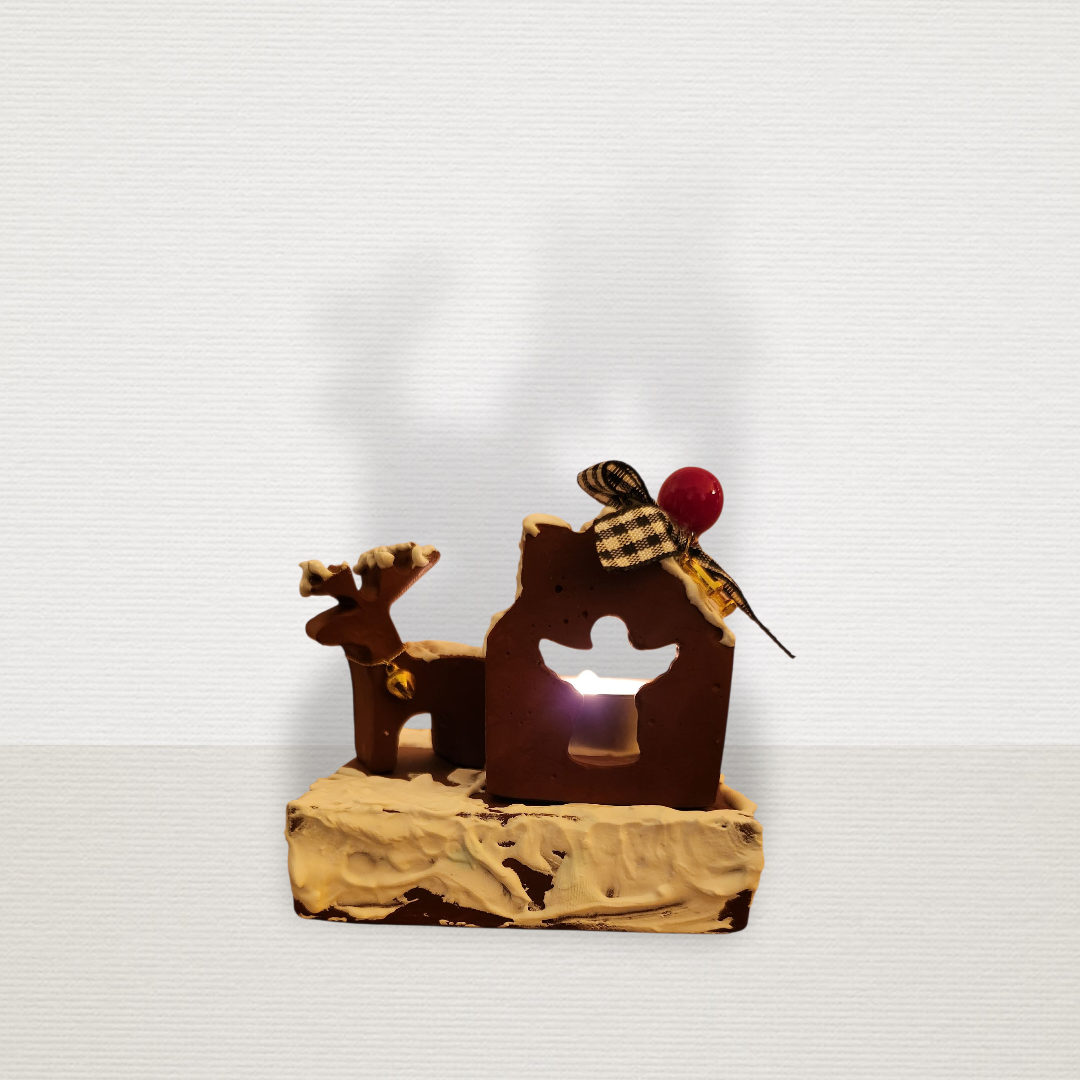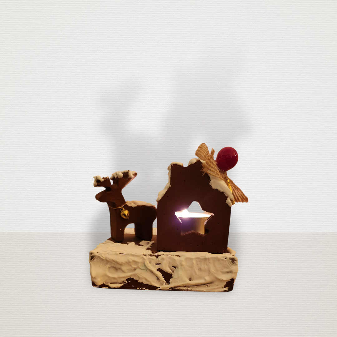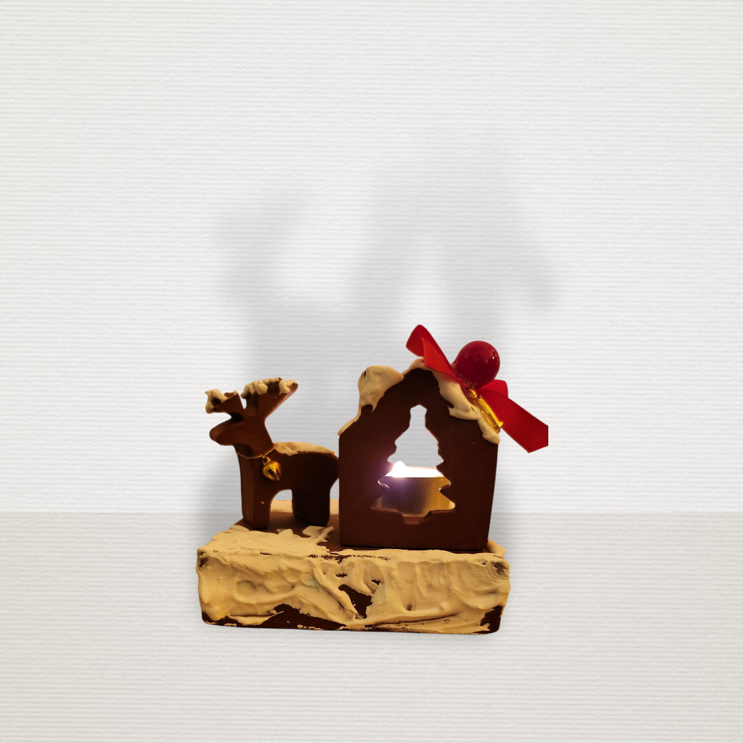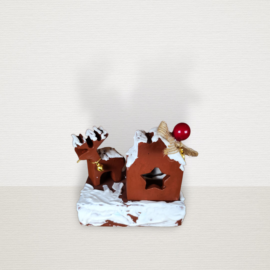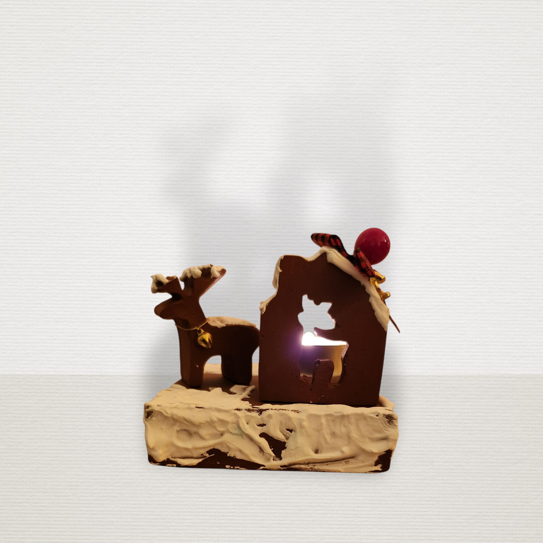 Γούρι Σε Βάση Με Σπίτι & Τάρανδο Μπορντώ CHR2014
