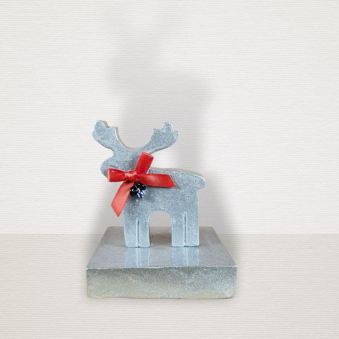 Γούρι Σε Βάση Με Τάρανδο Ασημί CHR2020