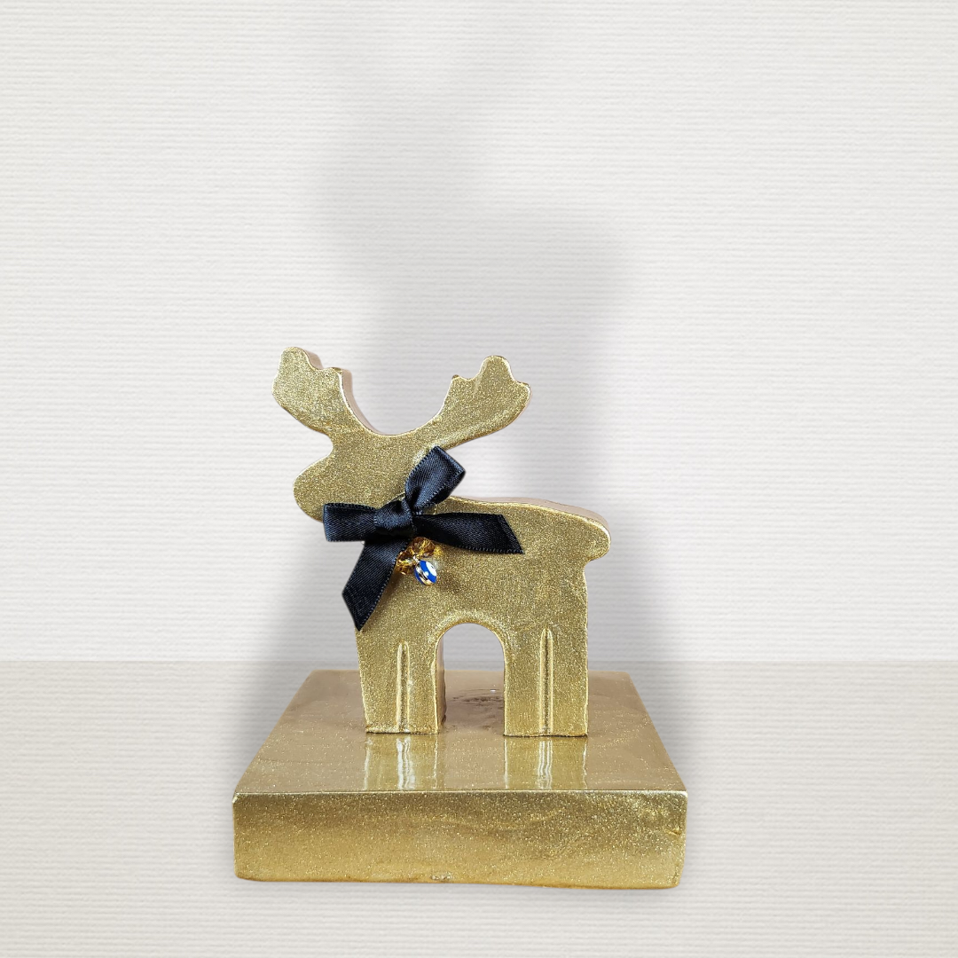 Γούρι σε βάση με τάρανδο χρυσό. Μ10εκΠ10εκΥ11,5εκ. ΔΙΑΘΕΣΙΜΟ ΚΑΤΑ ΠΑΡΑΓΓΕΛΙΑ *όλα μας τα προϊόντα είναι 100% χειροποίητα, μοναδικά κομμάτια! Σας ενημερώνουμε ότι τα προϊόντα που είναι κατά παραγγελία, ενδέχεται να έχουν κάποιες διαφορές στο σχήμα και το χρώμα.