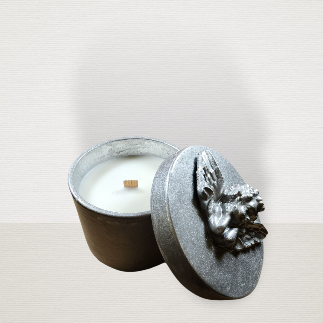 Κερί σόγιας 280γρ. με ξύλινο φυτίλι, σε γύψινο βάζο με καπάκι με άγγελο ασημί. Υ10.5εκΔ12εκ. ΔΙΑΘΕΣΙΜΟ ΚΑΤΑ ΠΑΡΑΓΓΕΛΙΑ σε ό,τι άρωμα επιθυμείτε. *όλα μας τα προϊόντα είναι 100% χειροποίητα, μοναδικά κομμάτια!
