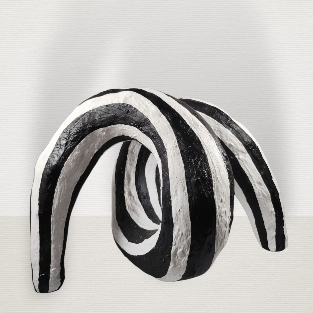 Χειροποίητο γύψινο διακοσμητικό γλυπτό λευκό με μαύρες ρίγες. Υ33εκΜ52εκΠ37εκ.